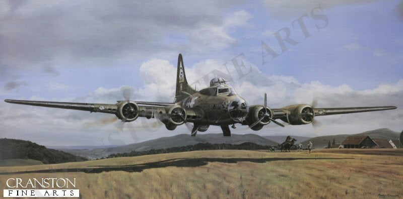 On the morning of October 14th 1943 along with 15 others from the 305th Bomb Group, Lazy Baby set off from Chelveston in England on Mission 115, the second Schweinfurt raid, later to become known as Black Thursday. By the time they reached Aachen on the outward leg only Lazy Baby and two others of the 305th were left flying, They were then seriously damaged and three crew severely injured whilst two bailed out. Diving from 23,000 ft to only 3,000 ft, pilot Ed Dienhart managed to escape the attacking fighters. With the ball turret gunner trapped and navigator seriously injured they proceeded at 30 to 50 feet, hedge-hopping all the way, to Switzerland and safety. Guided by the navigator Don Rowley who, despite having both arms virtually severed, managed to steer them from memory for over an hour to Switzerland where they made a dramatic crash landing only four miles from the German border. The navigator died the following day from his injuries. Whilst the pilot drew upon every ounce of his flying skills, the rest of the crew exhibited untold valour in the face of terrible adversity and selfless devotion to their stricken comrades. This print is autographed by pilot Ed Dienhart and Swiss Schoolmaster Leo Thuring who helped to rescue the mortally wounded navigator. Accompanying the print is a 24 page illustrated book which charts the story from take off, through the landing, to the eventual escape of some of the crew back to England. An individual book plate is also signed by members of the crew, the author and relevant Swiss personalities providing not only a complete historical record of the heroism and valour of the crew, but a tribute to all who fought for the freedom which we now enjoy.