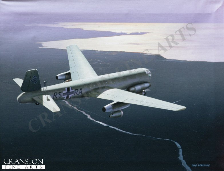 The Junkers Ju.287 V1 bomber prototype was a typical example of Germany's research into advanced aerodynamics at the end of World War II. Featuring forward swept wings and four Jumo 004B-1 Orkan axial-flow turbojets, this extraordinary aircraft made several successful flights before the project was curtailed by the war's end. RS+RA is shown on a test flight, carrying a cine camera in front of the fin to record airflow by means of wool tufts glued to the wings and fuselage sides. The characteristics of forward swept wings are only now being re-evaluated, 70 years after Junkers' first tentative steps into the unknown.