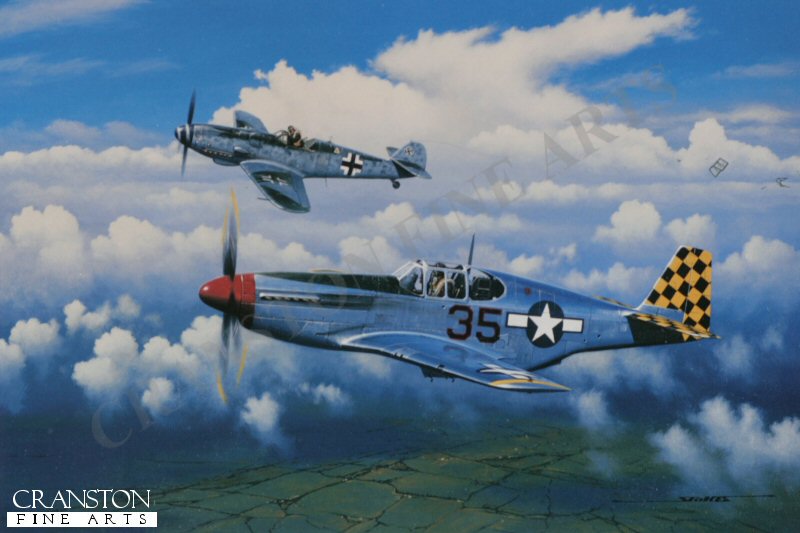 There were tens of thousands of aerial combat encounters during World War II. One of the most unusual was a dogfight that took place between Captain Arthur C. Fiedler, Jr. and an unidentified German Bf-109 pilot on June 28, 1944. Fiedler was an Illinois native who received his wings in July 1943. He was assigned as a flight instructor in Dover, Delaware, but in May 1944 he was assigned to the 317th Fighter Squadron of the 325th Fighter Group. Flying P-51B Mustangs the 317th was based in Lesina, Italy. Fiedler named his Mustang after his wife Helen. On a combat mission on June 24th Fiedler claimed a probable. Four days later the eventual ace was flying near Polesti, Rumania when a Bf-109 crossed directly in front of his aircraft. Slamming his P-51 into a near vertical bank he trailed the 109 for a few seconds attaining several hits before his guns jammed. As Fiedler rolled out of his bank he found himself flying in formation parallel to the 109, and headed towards Russia. Fiedler was not willing to make himself a target for the 109, and with his Mustang low on fuel and with jammed guns, Fiedler reactively drew his service revolver. As he drew his .45 pistol, the German pilot unexpectedly jettisoned his canopy and bailed out. Fiedler was given the nickname Svengali for this incident. Fiedler continued his combat tour into 1945, and by January he had attained 8 confirmed aerial victories. Fiedler remained in the Air Force following the War. Flying in both Korea and Vietnam, he was promoted to Colonel in 1969, and retired from the Air Force in 1975. The P-51 Mustang and the Messerschmitt Bf-109 were two of the most important aircraft of WW II. More than 15,000 P-51s were produced, the most of any American-built fighter, while the Bf-109 was the most produced fighter aircraft of the war with 35,000 produced. The P-51 was designed by Raymond Rice and Edgar Schmued of North American Aviation, because the President of the company thought he could do better than merely produce Curtiss P-40s under license for the RAF. Initially introduced with an Allison liquid-cooled V-12, the P-51 performed poorly despite its superior airframe. As early Mustangs arrived the British were anxious to see how this aircraft would perform with the powerful Rolls Royce Merlin engine. The aircraft was about 13 percent faster and could climb to combat altitude in 45 percent less time than the Allison-equipped aircraft. Going into production as the P-51B the Brits received about 1000 aircraft while the USAAF took an additional 1000. The first P-51B models were in service with the Eighth Air Force in December 1943. The excellent performance of these aircraft and their excellent range when equipped with external wing tanks, made the P-51 a tremendous asset when accompanying American daylight bombers on their raids into Germany. The 109 was arguably the most advanced fighter aircraft from 1935 until 1940. The 109 was designed by Willy Messerschmitt and Walter Rethel with the goal of packing the most powerful engine available into the smallest possible aircraft structure. During the Spanish Civil War the 109 proved its superiority. Despite numerous technical enhancements as the war progressed, by the end of the War the 109 was both outclassed and outnumbered by its rivals.