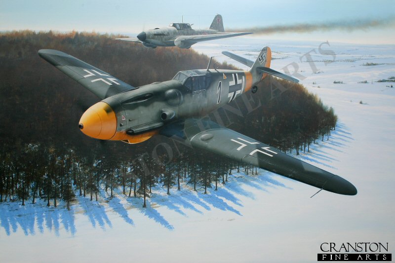 The top scoring ace of JG.51, Anton Hafner is credited with 204 confirmed victories. A prolific scorer, on 8th August 1944, he shot down no fewer than seven Russian Sturmoviks and, by October of that year, his overall tally had exceeded 200. He died in combat with a Yak 7, his 204th victim, when his aircraft hit a tree. He is shown here in Messerschmitt Bf.109G-6 442013 Black 1.
