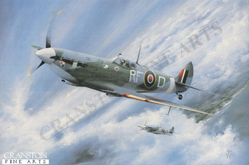 Squadron Leader Jan Zumbach V.M., K.W., D.F.C & Bar in his Spitfire Vb of the Polish 303 (Kosciuszko) Squadron patrolling the English Channel during 1942.