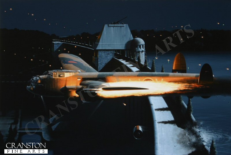 The Lancaster B MkIII of Flt Lt J V Hopgood was the second aircraft to make an attempt at breaching the Möhne Dam on the night of 16/17th of May 1943. Already damaged by flak en route to their target, the embattled Lancaster ED925(G) (AJ-M) encountered intense flak and 20mm fire from the shore and from the towers of the dam itself. Flying Officer Gregory's front gun turret had taken the full force of the flak burst during the journey, killing him instantly, and Hopgood himself was almost certainly wounded in the same explosion. Nevertheless, they pressed home their attack but, just moments from the release of the Upkeep bomb, both of Hopgood's port engines took direct hits and burst into flames, and other rounds ripped through the starboard wing. Perhaps distracted by the sudden conflagration, Hopgood's aircraft released its bomb just seconds too late to be effective. The bomb bounced over the dam wall, landing on the power station below where it exploded with devastating results. With blazing fuel now engulfing the wing of his crippled aircraft, Hopgood climbed to about 500ft where the wing failed, sending ED925 into a dive from which it would never recover. By jumping clear, clutching their parachutes just moments before impact, two of her crew survived to become prisoners of war.
