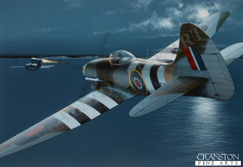 Equipped with the experimental Monica IIIE detection device, Hawker Tempest EJ535 was deployed to the Fighter Interception Unit at Newchurch for evaluation in July 1944. Originally developed as the AN/APS 13, Monica had been intended as a rear-looking device to warn crews of attacks from behind. Now modified to face forward, it became a valuable aid in the battle against Hitler's terror weapons, notably the V-1 Flying Bomb. In the hands of the Fighter Interception Unit's then Commanding Officer Joseph Berry, this became a winning combination with no fewer than 52 Doodlebugs falling to Berry's guns - on one occasion, seven V1s being shot down by Berry in a single night.