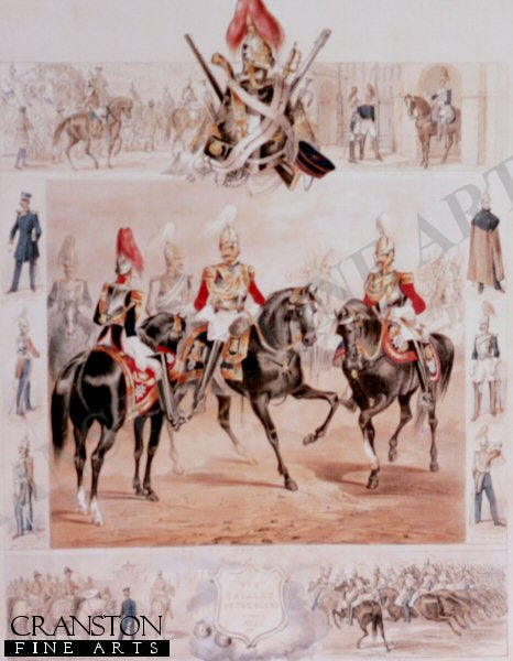 Showing the 1st Life Guards, 2nd Life Guards, Royal Horse Guards ( The Blues), Royal Dragoons, 1st Dragoons.