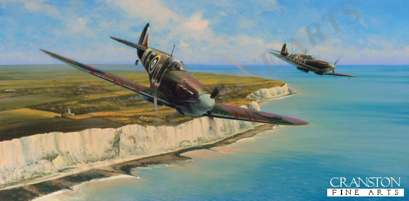 On 14th June 1940, the first German jackboots were heard on the streets of Paris. Within days France signed an armistice and Hitler could now turn his avaricious eyes north and across the grey waters of the Channel. The island of Britain stood alone and, faced with the threat of imminent invasion, few gave her much chance of survival. Before the all-conquering Panzers could invade, Germany needed to gain air superiority and Goering boasted that his Luftwaffe 'would quickly sweep the RAF from the skies' - how wrong he would be. The Battle of Britain began on 10th July 1940 and for the next eight weeks most front-line squadrons were often flying four missions a day. Totally outnumbered by the Luftwaffe the RAF was close to breaking point by early September, with some units reduced to a handful of pilots and aircraft. Then on 7th September, an over-confident Goering made a fatal error. Believing the RAF destroyed, he changed tactics and the Luftwaffe began bombing civilian targets in London. It was the respite that Fighter Command needed and the tide of battle was turned. Against overwhelming and seemingly impossible odds, a replenished RAF repelled the Luftwaffe and by the end of October it was over. Richard Taylor's stunning painting depicts Mk1 Spitfires from 92 Squadron undertaking a defensive sweep along the Kent coastline against a dramatic backdrop of the white cliffs of Dover, at the height of the battle in September 1940.