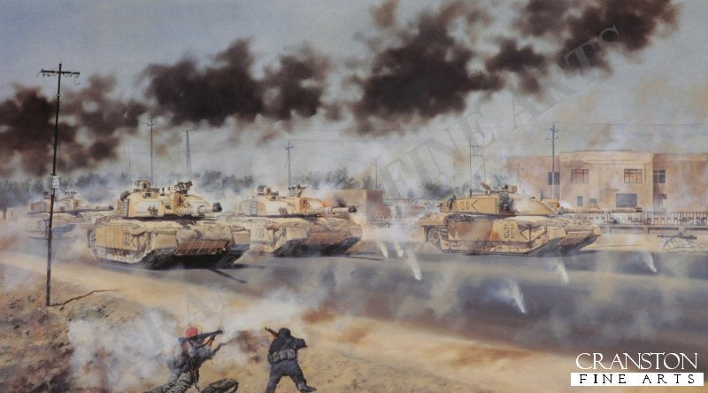 Cyclops Squadron of the 2nd Royal Tank Regiment raiding into Az Zubayr, Iraq, at midday on 26th March 2003.