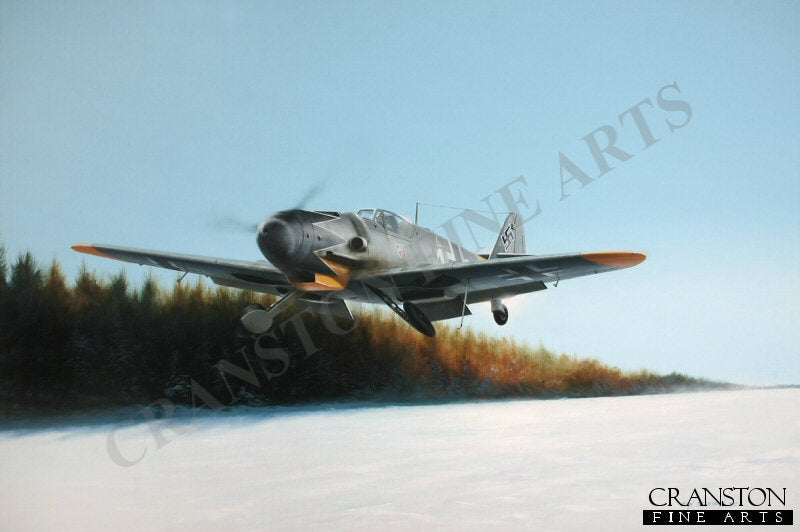 The highest scoring fighter pilot of all time with a confirmed tally of 352 victories, Erich Hartmann is depicted getting airborne from a snowy airstrip in Czechoslovakia, late in 1944 in a Bf109G-6 of 6./JG 52.