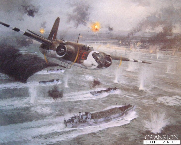 As dawn breaks over Normandy on the 6th June 1944, a low flying RAF Douglas Boston of 88 Squadron defies hostile fire to lay a protective smoke screen over the first wave of British troops approaching the invasion beaches. The Boston E for Easy is Piloted by Flight Officer Leslie Valentine C de G. ad his Navigator Pat McVeigh.