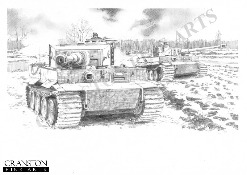 Tscherkassy Pocket, Russia, 13th February 1944. The two Tiger Is of Feldwebel Heinz Gartner and Oberfahnrich Heinrich Rondorf, of Heavy Tank battalion 503 destroyed a surprise Soviet counter attack by some 15 T-34s from Chishinzy village. By now the relief force Panzer Regiment Bake of which they are part were only a few days away from opening a corridor to the Korsun pocket. By the end of the war these two tank commanders had destroyed 103 and 106 enemy tanks respectively.