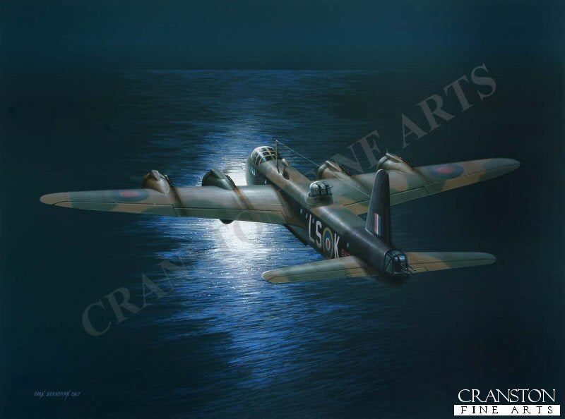 Bomb doors open and ready for the vital drop, Short Stirling III EH990 prepares to lay her deadly cargo of mines off the coast of the Frisian Islands on the night of 7th October 1943. LS-K failed to return from the perilous mission, the aircraft believed to have been the victim of a German night fighter.