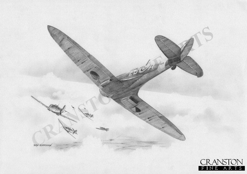 The lone Spitfire of Maurice Peter Brown of No.41 Sqn, single-handedly attacks a group of eight Me109s on 25th October 1940.