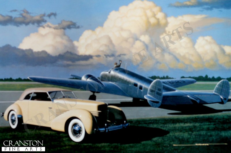 While considerable controversy still surrounds the disappearance of Amelia Earhart in 1937, there is no question that Amelia Mary Earhart was one of the great pioneers of American aviation. Born in Atchison, Kansas in 1897, Amelia was the daughter of a railroad attorney. She exhibited an adventurous spirit at a young age, and was able to travel extensively with her parents. In 1918 at the age of twenty-one, Amelia witnessed a flight demonstration in Toronto, and this inspired her to take a course in engine mechanics. Three years later she was in New York City studying medicine at Columbia University when she had the opportunity to take her first airplane ride to California. She immediately decided to learn to fly, and she remained in California where she obtained her pilots license in 1921. During the next few years Earhart had many jobs in many locales, but her true love was flying. Amelia was the first female passenger to cross the Atlantic in 1928, and the fame this generated allowed her to direct her attention at attempting other record-breaking feats. Amelia met George Putnam during this time, and he supported her flying efforts. They married in 1931. In 1932 Amelia became the first woman to make a solo crossing of the Atlantic flying a Lockheed Vega. Months later she became the first woman to completed a solo flight from Los Angeles to New York. Her next major record came in January, 1935 when she completed a solo flight from Honolulu to Oakland in a little over 18 hours. In 1936 Earhart was appointed to the faculty of Purdue University which provided her a Lockheed Electra as a flying laboratory. Having access to the Electra allowed Amelia to begin planning her dream flight, an around the world crossing as close to the equator as possible. In March of 1937 she embarked on a round the world trip in a westerly direction, but her aircraft was damaged on take off from Hawaii. In June a new route going in an easterly direction, starting from Miami, was mapped out by her navigator, Fred Noonan. Departing on June 1, 1937 Earhart arrived in Lae, New Guinea some 22,000 miles and 146 flying-hours later. The next leg of this record setting trip would cover 2,500 miles over the Pacific with the intended destination being the tiny Howland Island. When Earhart and Noonan failed to arrive, a massive search commenced, which was abandoned in mid-July. Presumably lost at sea, the nation mourned the loss of one of its heroes. In Stan Stokes painting entitled Lady Pioneer, Amelias beloved Model 10E Electra is depicted next to the aviators Cord automobile. This aircraft was delivered to Earhart in 1936. It was powered by twin 550 HP Wasp S3 H 1 engines, and was equipped with extended range fuel tanks, giving the craft a maximum range of 4,000 miles. The Electra was returned to Lockheeds plant in Burbank in 1937 for repairs following the accident in Hawaii. A new right wing was fitted, and repairs were made to the center fuselage and landing gear. The Civilian Aviation Administration officially canceled the registration of Earharts NR16020 in July of 1938, approximately one year after her disappearance. 1997 marked the 100th anniversary of Earharts birth and the 60th anniversary of her disappearance.