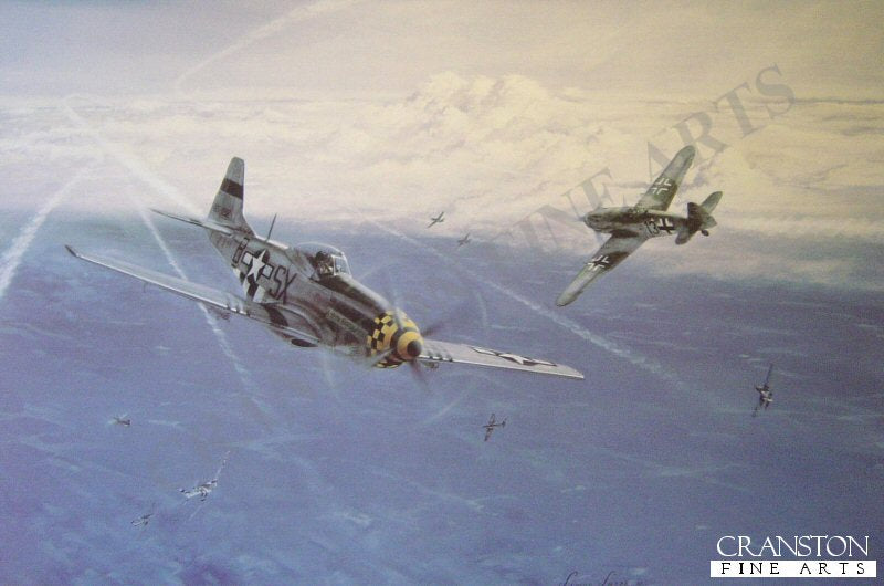 The aircraft in the foreground bears the name Alabama Rammer Jammer, the personal mount of 2/Lt Arthur Cundy ,352nd FS, 353rd FG. The 353rds yellow and black chequered nose bands were one of the most distinctive recognition features of all the Eighths fighter groups.