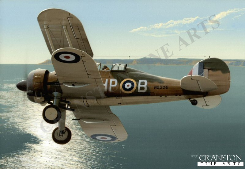 A Gloster Gladiator MkII of 247 Sqn is depicted patrolling off the Cornish coast in August 1940 during which time this squadron became the only one to operate the Gladiator in the defence of the South of England during the Battle of Britain.