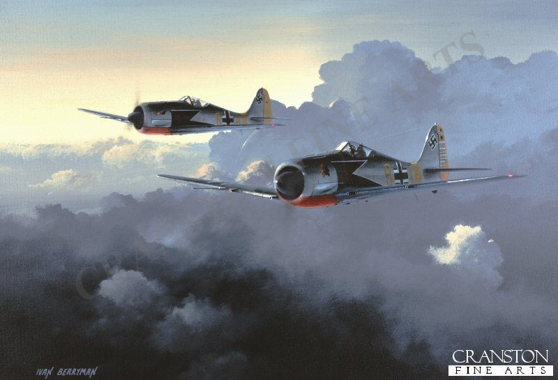 A pair of Focke Wulf 190A4s of 9./JG2 Richthofen based at Vannes, France during February 1943. The nearest aircraft is that of Staffelkapitan Siegfried Schnell. The badge on the nose is the rooster emblem of III./JG2 and the decoration on Schnells rudder shows 70 of his eventual total of 93 kills.