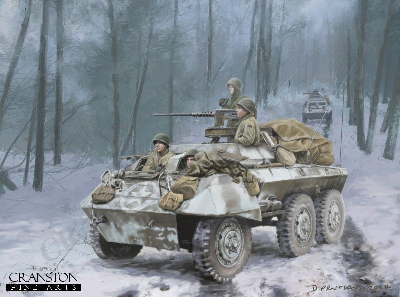M20 Utility Cars on reconnaissance, Ardennes, 24th December 1944. The lightly armed US reconnaissance units were in constant use during the Battle of the Bulge, even on Christmas day they were employed trying to establish current German locations.