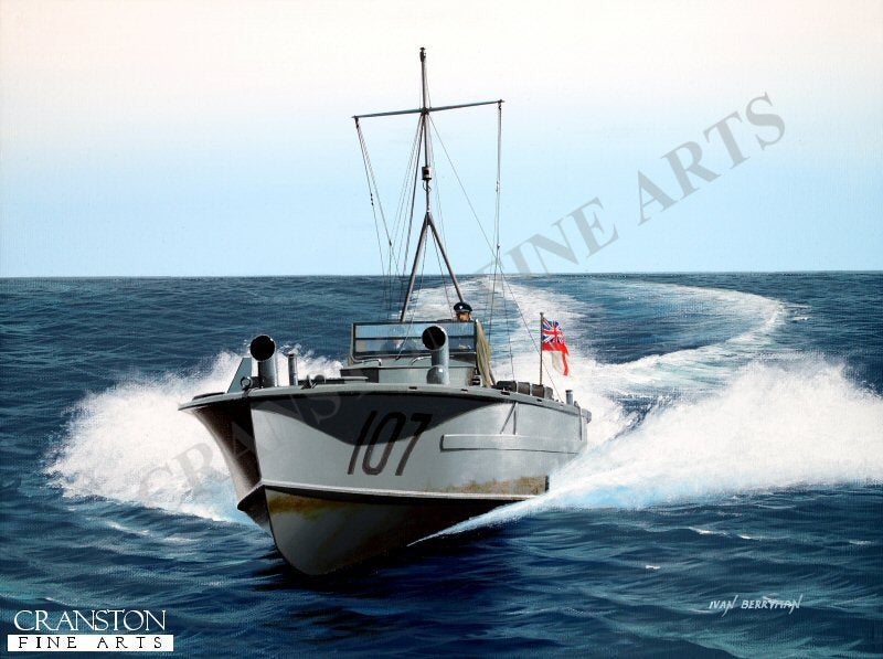 Commanded by Lord John Cameron, MTB107 took part in Operation Dynamo - the evacuation of Dunkirk in the first week of June 1940. Working with the destroyer HMS Vivacious, the Vosper Thornycroft experimental Motor Torpedo Boat delivered blockships overnight into June 3rd, partially blocking the channel of the port of Dunkirk. The next night, MTB107 worked with HMS Shikari to deliver two more blockships to complete the blocking of the channel. A third blockship was sunk in collision en-route, MTB107 picking up seven of the crew.