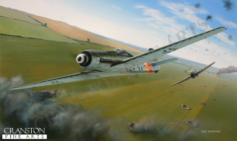 Whilst attacking a temporary airfield North of Stendal on 22nd April 1945, a group of 198 Sqn Typhoons led by Sqn Ldr N J Durrant were surprised to find themselves confronted by that rarest of fighters, Focke-Wulf's awesome Ta.152, one of them piloted by the great Willi Reschke of Stab / JG301, flying 'Black 13'. In the words of Sqn Ldr Durrant: 'The first wave of Typhoons had broken up the airfield surface with 500lb bombs and started some fires. I spotted some of the enemy trying to get airborne through the smoke and as I made a low pass, another Focke-Wulf passed me from behind at great speed. Thinking this would be an easy 'kill', I fired a short burst, but the enemy was gone. I remember thinking that there must be something wrong with my own machine because I felt like I was standing still. Only later did I learn what we had encountered. Thank God the war ended when it did.'