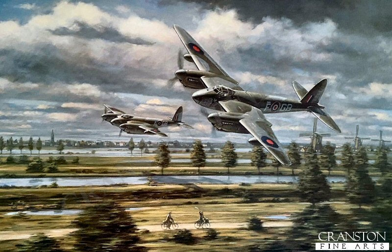 Pathfinder Mosquitoes precede a main force of Lancaster bombers to mark out targets zones in the Netherlands fro supply drops during Operation Manna, in the final week of the war