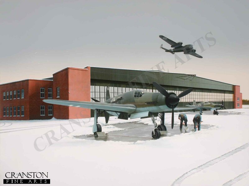 Two Dornier D.335s have the snow cleared from their positions on the apron at Oberpfaffenhoffen early in 1944. Furthest aircraft is prototype D0.335A-10, CP+UL (V11), two-seat trainer whilst VP+GH (102) occupies the foreground.