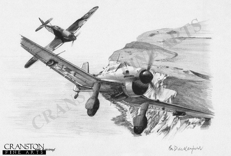 Byron Duckenfield is recorded as having shot down a Stuka near Dover, but the exact circumstances are not clear. 501 Sqn did encounter Stukas in this area on a number of occasions - depicted here is a 501 Sqn Hurricane on the tail of a Ju.87.