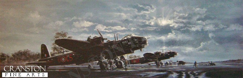 As night falls, Short Stirlings of XV Squadron based at Mildenhall, Cambridgeshire, await their crews for yet another nocturnal mission. One of the almost forgotten Bomber Command aircraft that made a very significant contribution to the war effort.