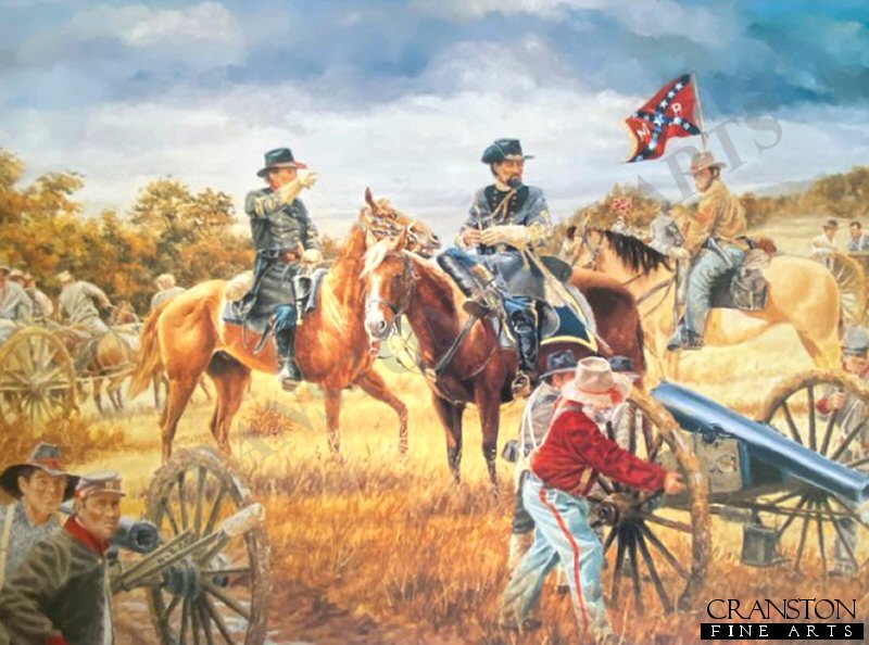 Major General Bedford Forrest with Mortons Battery at Johnsonville, Tennessee, November 4th 1864. Confederate artillery is drawn into position as General Bedford Forrest looks on.
