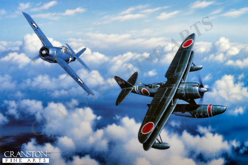 The Grumman F4F Wildcat was the third monoplane to see carrier service with the Navy. It was also the fighter aircraft which would carry the brunt of the fighting in the Pacific until 1943 when the F6F Hellcat would enter service. The Wildcat was flow by both USN and USMC aviators. The Wildcat lacked the range and maneuverability of the Mitsubishi Zeros it often faced, but the Wildcat was more heavily armed and able to take a lot more punishment than the Mitsubishis. Most of the pilots which obtained ace status while flying the F4F obtained most of their victories against Japanese bombers and reconnaissance aircraft. Eight individuals were awarded the Congressional Medal of Honor while displaying valor while in command of an F4F. The pilots of no other aircraft during WW II were as highly decorated. One of the most outstanding of this elite group was USMC Captain Joseph Jacob Foss. Foss, a South Dakota native, had been accepted as a naval aviation cadet following his graduation from the University of South Dakota. Foss had already learned to fly on his own, and had no difficulty earning his wings. Foss flew with VMF-121 in Guadacanal in 1942 and early 1943. He was credited with 26 confirmed aerial victories, making him the first American aviator to reach the victory record of the famed Captain Eddie Rickenbacker, one of Joes boyhood heroes. The ground based fighter pilots in Guadacanal were often referred to as The Cactus Air Force. As the Executive Officer of VMF-121 flying out of Henderson Field, Joes amazing victory tally helped make VMF-121 the highest scoring Marine squadron of the War. The success at Guadacanal was not without a heavy price. More than 20% of VMF-121s pilots did not return from the campaign. The squadrons best combat day in Guadacanal was on October 25, 1942. Eighteen aerial victories were credited to the squadron, with Foss leading the way with five Zeros bagged on two combat missions. Because it was impossible to permanently assign aircraft at Guadacanal, Foss flew several different Wildcats, including those numbered 53, 50, and 84. Nicknamed Swivel-Neck-Joe by some his fellow pilots, Foss learned early that it did not pay to be surprised by the opposition. Foss also leaned that the most effective way to down an opposing aircraft was to get as close to it as possible before utilizing ones limited supply of ammunition. As depicted in Stan Stokes painting entitled Tough As Nails, Joe Foss is tangling with a F1M2 Pete on November 7, 1942. Joes first pass over the much slower float plane proves ineffective, and the Petes gunner actually stars the portside glass of Foss windscreen. Circling around, and approaching from below, the Pete would soon become his eighteenth victory. Returning from this mission Foss would have to ditch his aircraft. He was rescued by missionaries and returned to combat flying the next day. Joes second combat tour in 1943 was cut short due to the ongoing effects of a bout with malaria. Joe served in the Air Force Reserve after the War reaching the rank of Brigadier General. Following a successful career in both politics and professional sports, Foss has remained active and was instrumental in the formation of the American Fighter Aces Association, and has served as President of the NRA.