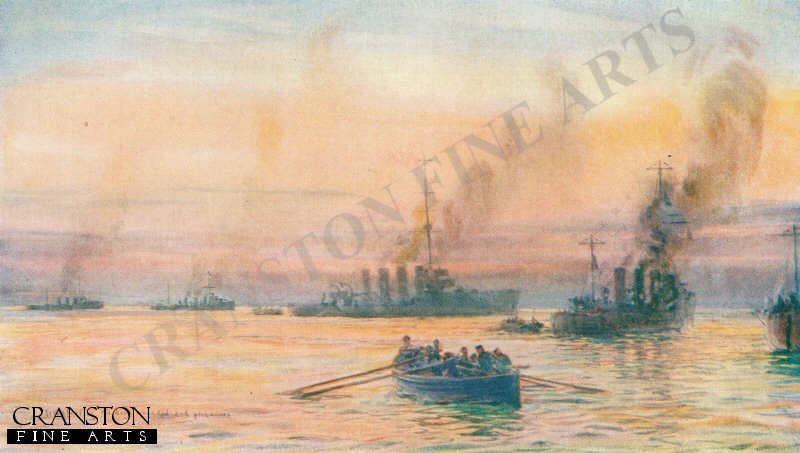 Small print from the collection of antique naval book plates of naval water colours by W L Wyllie, published 1918 by Cassel & Company.