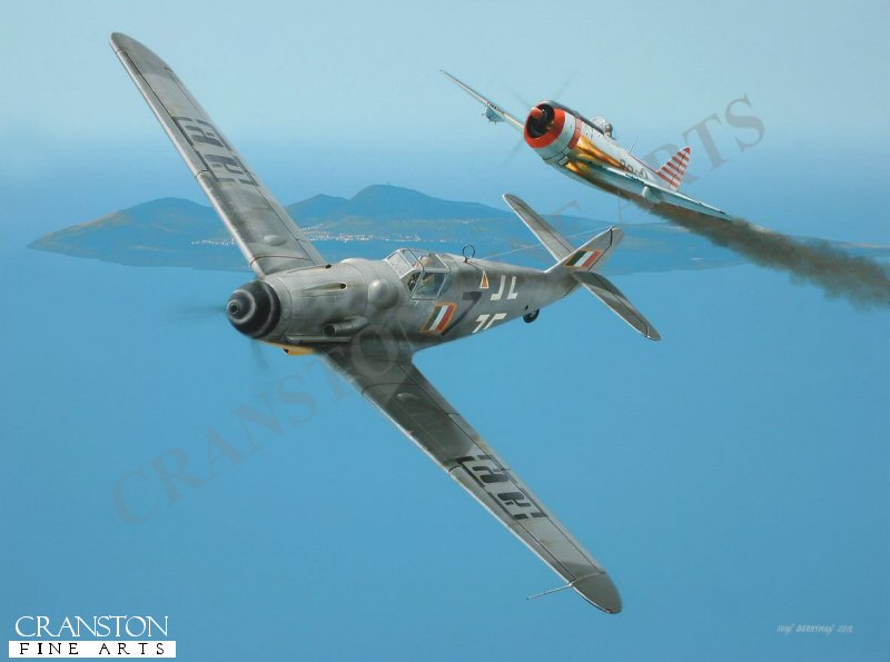 Having converted to the Messerschmitt Bf.109G with 150° Gruppo in 1943, Ugo Drago opted to ally himself with the Repubblica Sociale Italiana when the armistice was announced, taking command of 1a Squadriglia which also re-equipped with the Bf.109G. Drago scored eleven personal victories in the following nine months from June 1944, many of them flying 'Black 7', as depicted here, claiming a P.47 off the coast of Pantelleria.