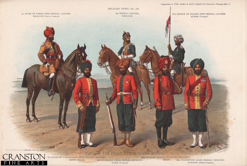 Types of the Indian Native Army, Bengal (No.2) by Richard Simkin [Antique]