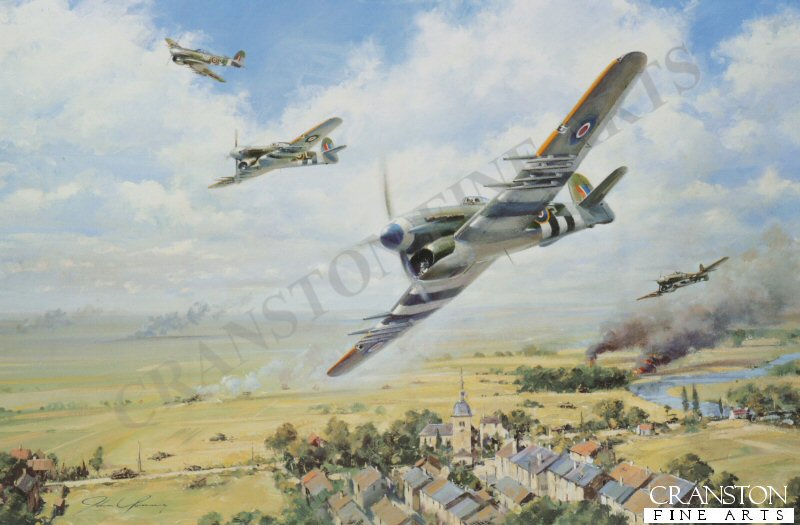 A Hawker Typhoon 1b of No.245 Squadron, 2nd TAF, attacking German armour during the Allied advance to the Rhine in the autumn of 1944.