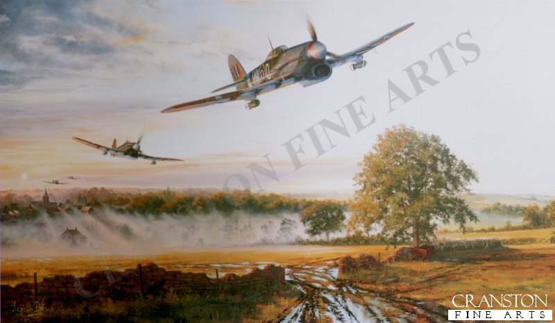 RAF Hawker Typhoon Mk IBs of 609 Squadron embark on a ground attack mission, head for targets in Northern France. Once initial problems with the tail section were resolved the Typhoon proved to be extremely rugged and reliable and was ideally suited to the ground attack role.