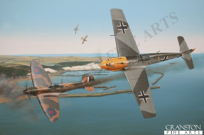 Adolf Galland claimed his 16th victory on the afternoon of 25th July 1940 when Spitfires of 54 Sqn were bounced by Messerschmitt Bf.109s of Gallands III/JG26. A fierce battle ensued off Dover during which F/Lt Basil Wonky Way, flying R6707, found himself the subject of the great German aces attention, his stricken aircraft being observed to plunge into the sea after receiving numerous hits from the Bf.109s guns. F/Lt Way lost his life in the crash, presumed drowned.