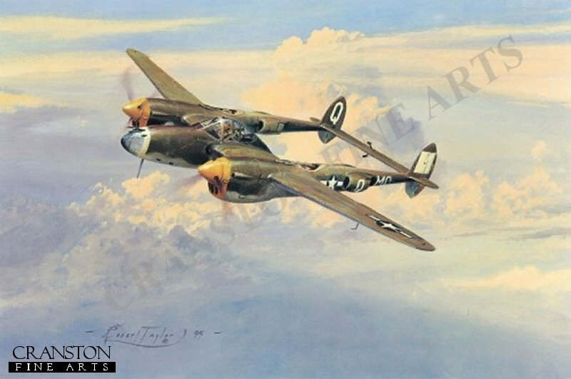 A superb study of the legendary P-38 Lightning, this print commemorates the American Air Forces that operated in the European Theater.